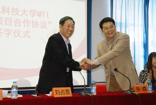 | 2016年4月21日下午,河北科技大學(xué)外國(guó)語(yǔ)學(xué)院院長(zhǎng)張森攜有關(guān)領(lǐng)導(dǎo)及師生30多人、我公司董事長(zhǎng)劉占查攜全體員工共計(jì)100余人,在公司多功能廳,就建立河北科技大學(xué)翻譯碩士研究生工作站項(xiàng)目成功簽約。會(huì)上,我公司董事長(zhǎng)劉占查發(fā)表了熱情洋溢的歡迎詞,對(duì)校方多年的鼎力支持表示感謝;河北科技大學(xué)外國(guó)語(yǔ)學(xué)院院長(zhǎng)張森就“建站”意義及校企雙方廣泛深度合作問(wèn)題做了重要講話。 河北科技大學(xué)外國(guó)語(yǔ)學(xué)院副院長(zhǎng)崔麗、河北科技大學(xué)外國(guó)語(yǔ)學(xué)院研究生教研室主任霍月紅、河北科技大學(xué)外國(guó)語(yǔ)學(xué)院成教與培訓(xùn)辦公室主任杜之濤、河北科技大學(xué)外國(guó)語(yǔ)學(xué)院翻譯系教師秦永生、河北科技大學(xué)外國(guó)語(yǔ)學(xué)院翻譯系教師閆亞琳,我公司工會(huì)主席、綜合事業(yè)部主任尚躍華、編譯部主任強(qiáng)紅心出席了簽約儀式。