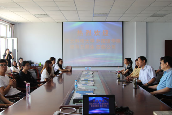 | 2017年6月7日,河北科技大學外語學院研究生班一年級24名學生來我公司實習實踐。這次實習實踐活動受到了學院領(lǐng)導和公司領(lǐng)導的高度重視,河北科技大學外國語學院院長張森、副院長崔麗、研究生教研室主任霍月紅、研一班主任老師安婕親自帶領(lǐng)研究生來到公司。公司董事長劉占查、總經(jīng)理曹艷爽、工會主席尚躍華、手冊編譯部主任強紅心等引領(lǐng)學院領(lǐng)導、帶隊老師及研究生們參觀了公司的多媒體會議廳、工作大廳、榮譽展室、工會活動室、錄音棚等場所,并在公司會議室召開了一個簡短的歡迎會,會上公司董事長劉占查代表公司歡迎各位同學的到來,并介紹了本次到會的公司負責人。學院院長張森對實習研究生做了要求與動員;公司手冊編譯部負責人強紅心簡單介紹了本次實習的計劃安排及實踐模式,安排了相應的指導教師并現(xiàn)場對接; 最后,在指導教師的帶領(lǐng)下,研究生們?nèi)ス镜膶嵙晥鏊煜きh(huán)境。中午,公司食堂為同學們準備了豐盛的會餐。預祝各位同學的實習圓滿成功!