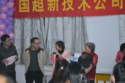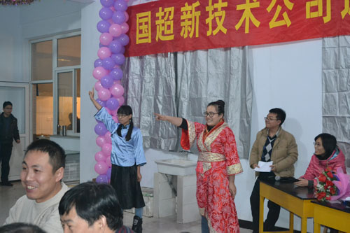 | 2013年12月27日晚,我公司一樓大廳燈光璀璨,笑語滿堂,2014年元旦聯(lián)歡晚會在這里隆重舉行。我公司董事長兼董事長劉占查攜全體員工以及有關(guān)公司領(lǐng)導(dǎo)歡聚一堂,喜迎元旦迎新年。 晚會在熱烈、激情的歌曲《國超之歌》中拉開帷幕。晚會有猜謎游戲、中外文歌曲、音樂劇、抽獎等節(jié)目,展現(xiàn)了國超人的青春活力和對公司的熱愛之情。晚會時代氣息鮮明,企業(yè)文化特色濃郁,多角度,多視點的營造出昂揚振奮、歡樂祥和的節(jié)日氣氛。本次晚會的節(jié)目都是公司員工自編、自導(dǎo)、自演的,迎得了大家的一致好評,員工們的精彩表演贏得滿場陣陣熱烈掌聲�;厥走^去,我們銳意進取,不斷求索;展望未來,我們勇往直前,再創(chuàng)輝煌。在新的一年里,國超公司必將繼往開來、與時俱進,創(chuàng)造更加燦爛輝煌的明天。
