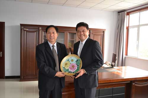 2013年10月22日,日本株式會社CMC社長佐佐幸恭、副社長關誠、廣州國超森茂森北京分公司董事長竹內(nèi)正博來我公司洽談業(yè)務并祝國超公司喬遷之喜,社長佐佐幸恭代表日本株式會社CMC向國超公司董事長贈送了禮物。