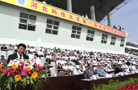 22日上午9時(shí)河北科技大學(xué)第一屆學(xué)生節(jié)開幕式在新校區(qū)主體育場(chǎng)隆重舉行,河北省委副書記付志方出席開幕式并宣布學(xué)生節(jié)開幕,省人大副主任馬蘭翠,政協(xié)副主席王剛及國(guó)家教育部,中國(guó)城市規(guī)則設(shè)計(jì)研究院,河北省國(guó)資委教育廳、文化廳、省考試院的主要領(lǐng)導(dǎo)在主席臺(tái)前臺(tái)就座,開幕式由河北科技大學(xué)黨委書記衛(wèi)舸主持。校長(zhǎng)李強(qiáng)代表高校黨政領(lǐng)導(dǎo)班子致歡迎詞。 我公司做為河北科技大學(xué)的教育教學(xué)實(shí)習(xí)基地,公司總經(jīng)理劉占查應(yīng)邀參加了開幕式,并在主席臺(tái)就座。上午10點(diǎn)30分公司總經(jīng)理參加了大學(xué)組織的企業(yè)家座談會(huì),就今后加強(qiáng)校企進(jìn)一步合作、共謀發(fā)展與高校領(lǐng)導(dǎo)進(jìn)行了坦誠(chéng)友好的交流。