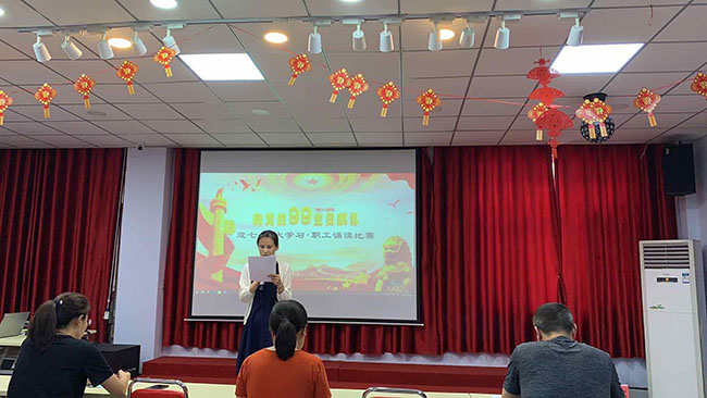 | 根據(jù)《河北省總工會(huì)辦公室關(guān)于開辦“大學(xué)習(xí)”課堂 建立職工讀書小組深化開展學(xué)習(xí)習(xí)近平新時(shí)代中國特色社會(huì)主義思想職工誦讀活動(dòng)的意見》,在市總工會(huì)的關(guān)心和指導(dǎo)下,我公司工會(huì)于2020年6月15日召開會(huì)議,組成以各部門負(fù)責(zé)人為領(lǐng)讀人的職工讀書小組,為深化開展職工誦讀活動(dòng),部署舉辦 “向黨的99歲生日獻(xiàn)禮 迎七一 大學(xué)習(xí) 職工誦讀比賽”。6月20日下午40余名職工參加了誦讀初賽, 17名職工脫穎而出,參加了6月23日的復(fù)賽,公司職工強(qiáng)紅、劉彤、鄧贊分別榮獲本次比賽的前三名。公司工會(huì)為獲獎(jiǎng)?wù)呒皡⒓颖荣惵毠し謩e頒發(fā)了榮譽(yù)證書和紀(jì)念品。 通過開展學(xué)習(xí)習(xí)近平新時(shí)代中國特色社會(huì)主義思想職工誦讀活動(dòng),進(jìn)一步推進(jìn)習(xí)近平新時(shí)代中國特色社會(huì)主義思想進(jìn)企業(yè)、進(jìn)車間、進(jìn)班組,真正做到入腦入心,達(dá)到了進(jìn)一步引導(dǎo)職工增強(qiáng)“四個(gè)意識(shí)”、堅(jiān)定“四個(gè)自信”、做到“兩個(gè)維護(hù)”、把加強(qiáng)職工思想政治引領(lǐng)的責(zé)任落實(shí)落細(xì)落地的效果。